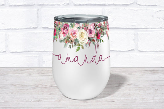 Personalized Bridesmaid Custom Name Floral Wine Glass