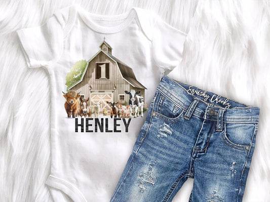 Rustic Farm Animal Birthday Shirt, Personalized for Baby Boy