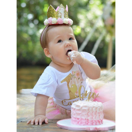 Girl's Rose Gold Floral Birthday Girl Leotard