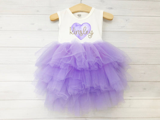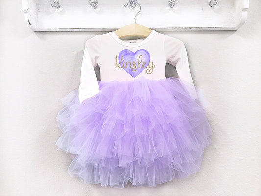 Girls Personalized Valentines Day Dress Lavender Fluffy Dress with Name