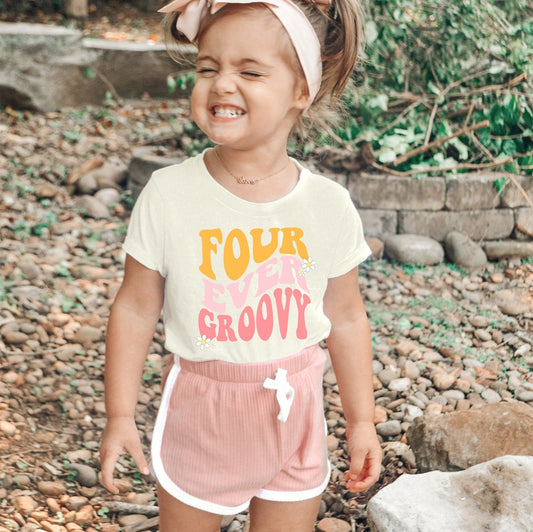 Four Ever Groovy Retro Groovy Fourth Birthday Girl Shirt Hippie Girl Birthday Vibes Outfit