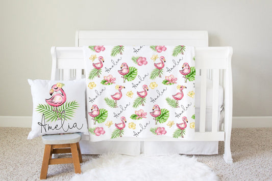 Baby Girl Pink Bows Floral Personalized Swaddle Blanket Ballerina Greenery Nursery Swaddle