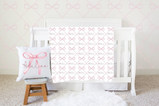 Baby Girl Personalized Bow Blanket Gender Coquette Nursery Bow Baby Blanket