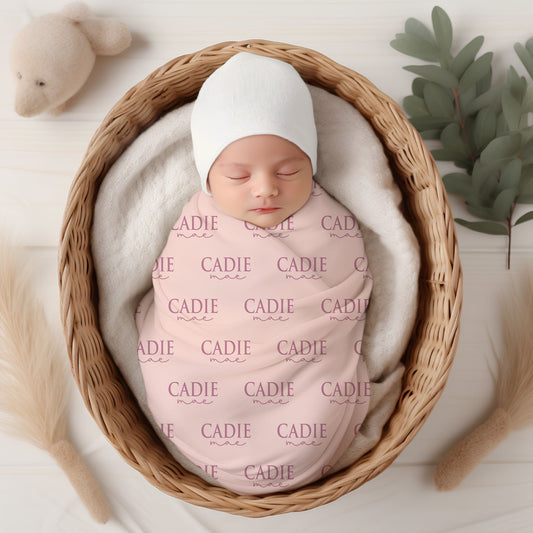 Baby Girl Personalized Name Swaddle, Pink Custom Name Blanket with Name Sign