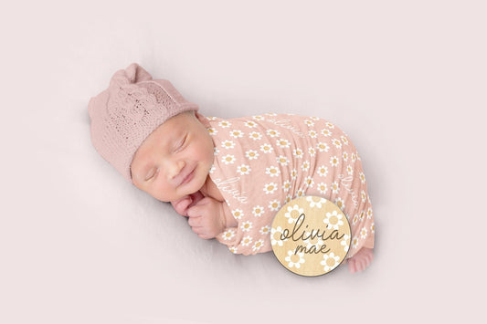 Baby Girl Pink Daisy Swaddle, Daisy Floral Personalized Swaddle Blanket, Baby Girl Boho Retro Pink Daisy