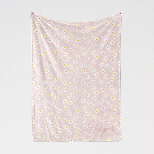 Baby Girl Pink Daisy Blanket Floral Personalized Swaddle Blanket