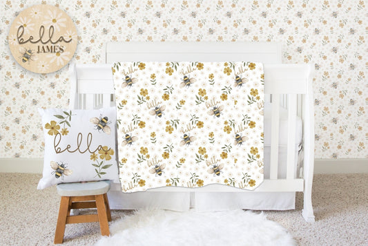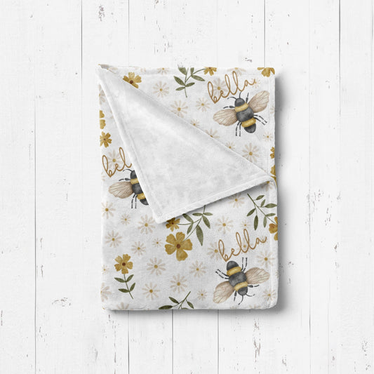 Bumble Bee Floral Swaddle Personalized Bee Blanket Boho Nursery Baby Blanket