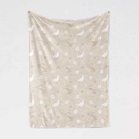 Vintage Ducks Daisy Personalized Baby Blanket Custom Name Blanket Swaddle Receiving Plush Blanket