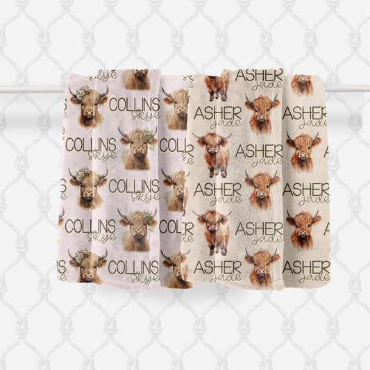 Baby Boy Personalized Highland Cow Baby Blanket Gender Neutral Baby Blanket