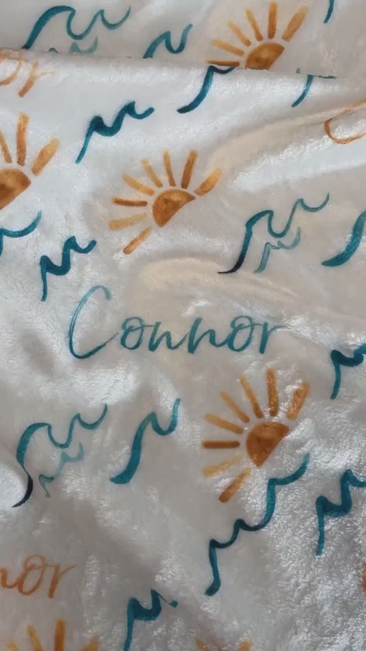 Sun and Wave custom Baby Swaddle Nursery Blanket