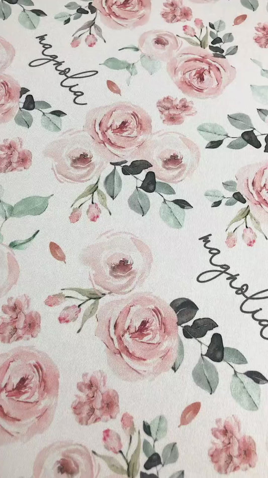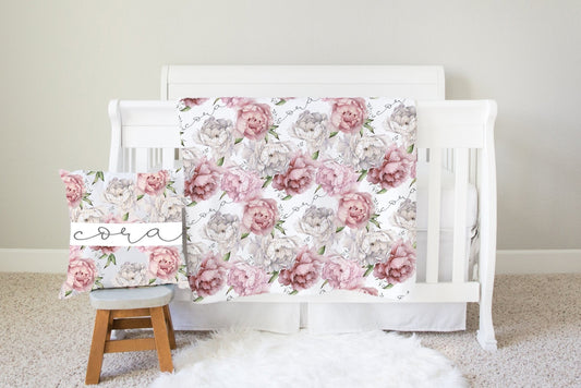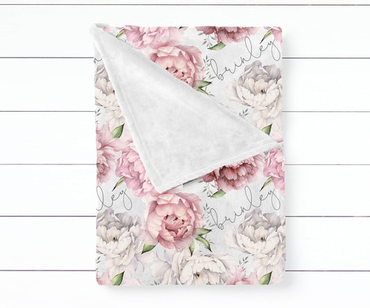Girl Peony Pink Floral Swaddle Baby Blanket