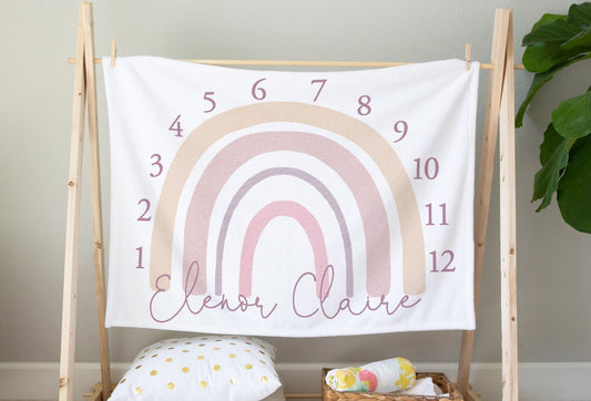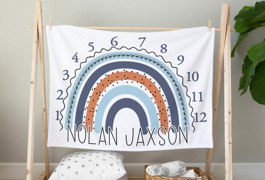 Baby Boy Blue Rainbow Monthly Milestone Blanket