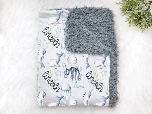 Personalized Under the Sea Nautical Nursery Baby Blanket Pillow Set