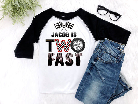 Two Fast Personalized Boy Birthday Shirt 2nd Birthday Race Car Second Birthday