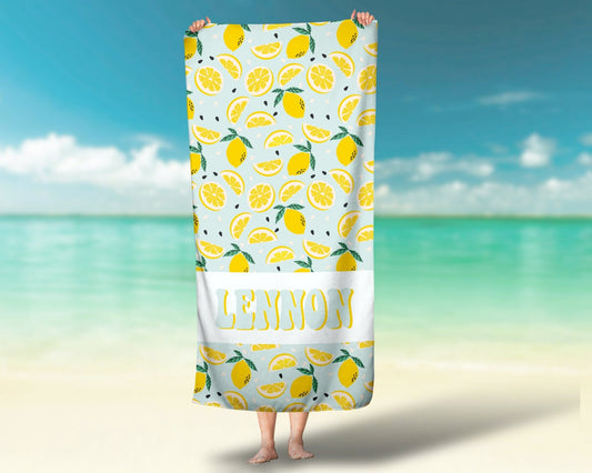 Girls Lemon Personalized Beach Towel, Retro Custom Beach Towel, Custom Children's Pool Towel Bathing Towel with name