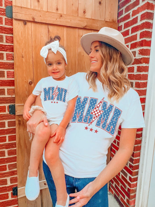 Retro Mama Mini Mommy and Me 4th of July Patriotic Matching Shirts Set