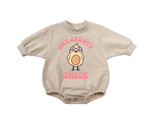 Funny Baby Girl Easter Onesie® One Groovy Chick