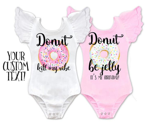 Girl's Donut Birthday Custom Text Leotard