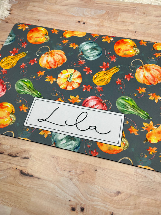 Fall Pumpkin Print Personalized Dog Food Bowl Mat