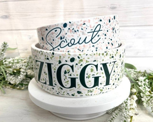 Terrazzo Print Personalized Pet Food Bowls