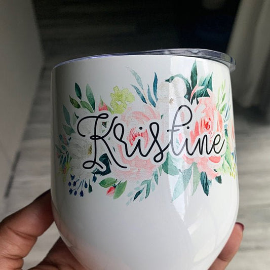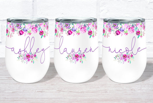 Personalized Purple Floral Wine Tumbler Bridal Party Gift