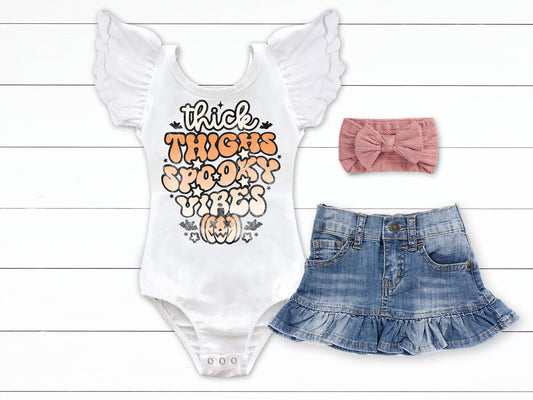 Baby Halloween Thick Thighs Spooky Vibes Leotard Bodysuit