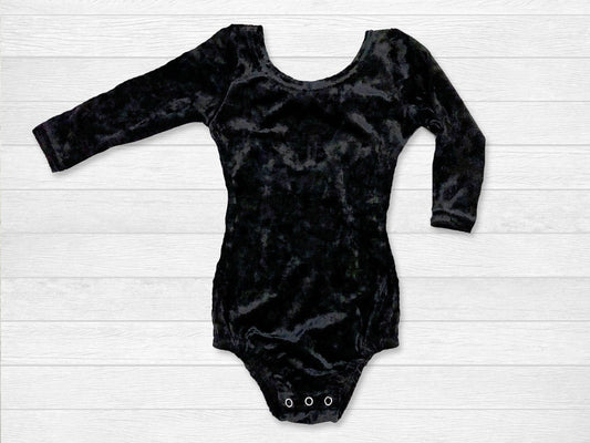 Black Velvet Long Sleeve Bow Back Flutter Sleeve Leotard