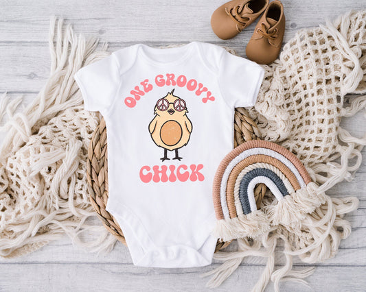 Funny Baby Girl Easter Onesie® One Groovy Chick