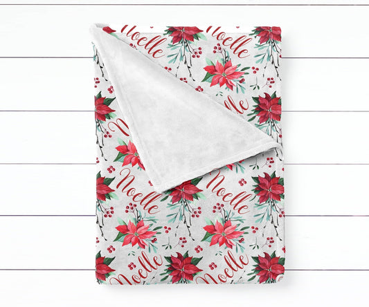 Personalized Red Floral Christmas Baby Nursery Swaddle Blanket