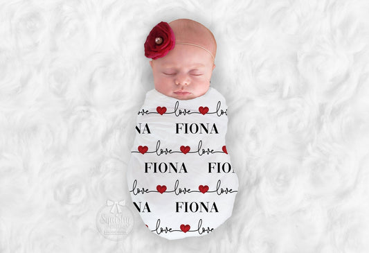 Love Valentine Heart Custom Baby Nursery Swaddle Blanket