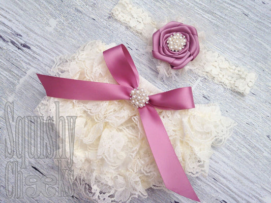 Mauve Vintage Lace Baby Bloomers and Headband,