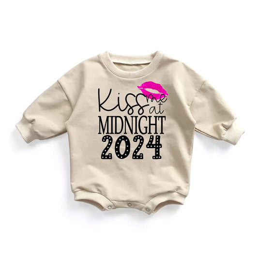 Baby Girl Kiss me at Midnight New Years Eve 2024 Bubble Romper NYE Bodysuit Outfit