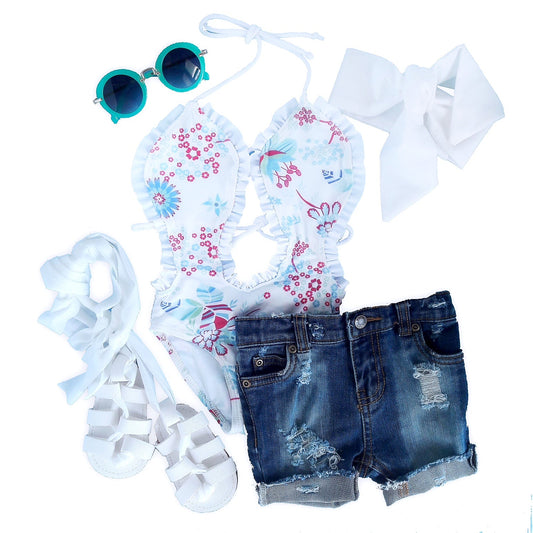 SALE White Floral Swimsuit