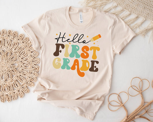 Retro Back to School Shirt Hello First Grade