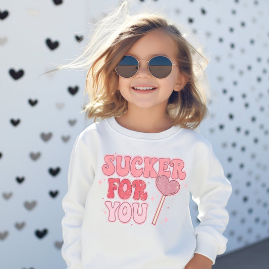 Sucker For You Valentine's Day Kids Shirt Girls Valentine Sweatshirt