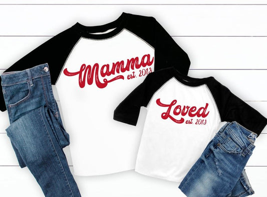 Loved Mama Valentine Mother's Day Matching Raglan Top