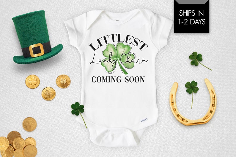 This Onesie® is the perfect way to announce your pregnancy this St. Patrick's Day season! These bodysuits also make the perfect gift and are adored at Baby Showers!